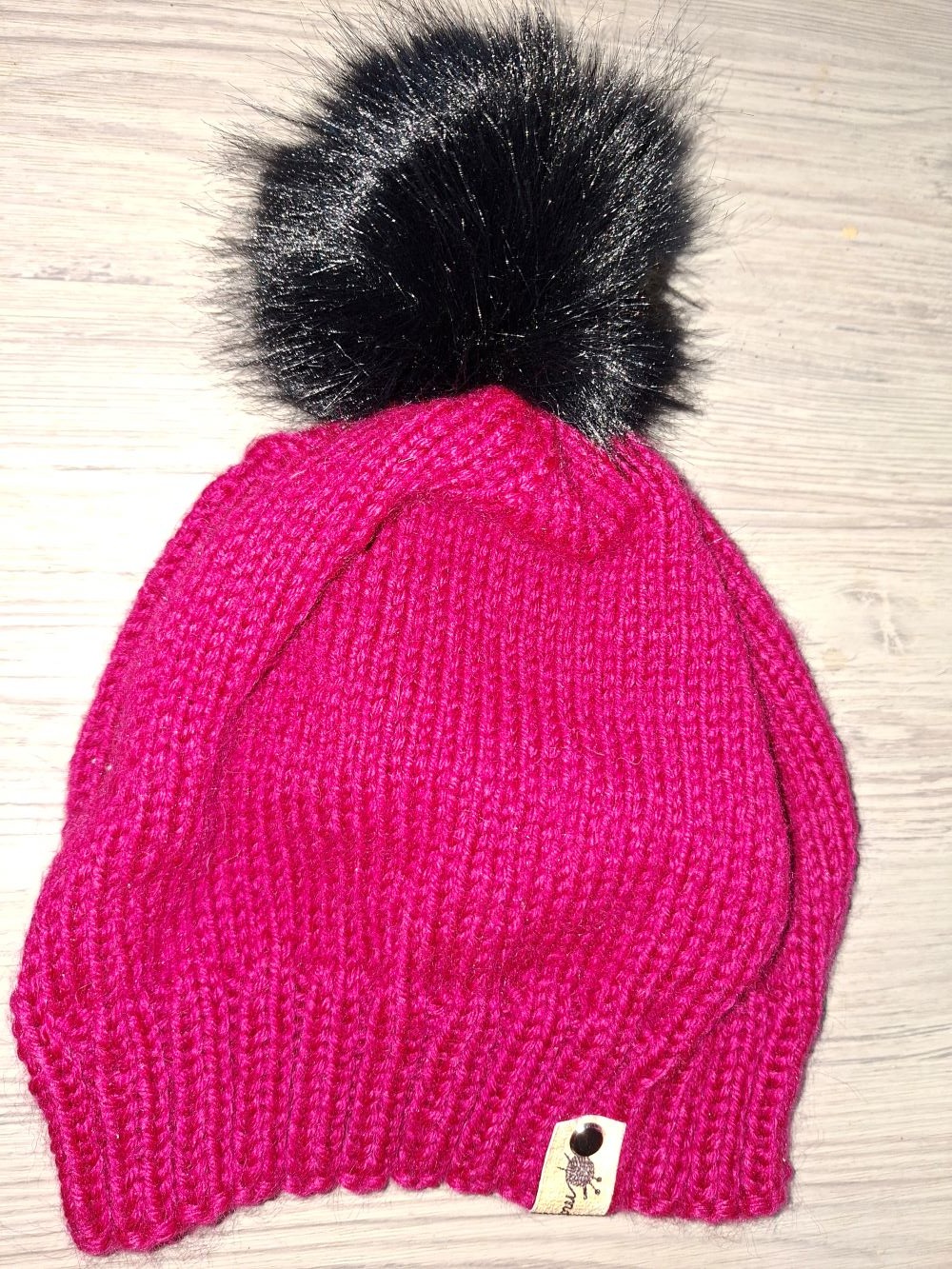 Krásná čepice v barvě zralých malin, materiál Alpaka vlna, šířka 50 - 60 cm, výška 23 cm + bambule v černé barvě.